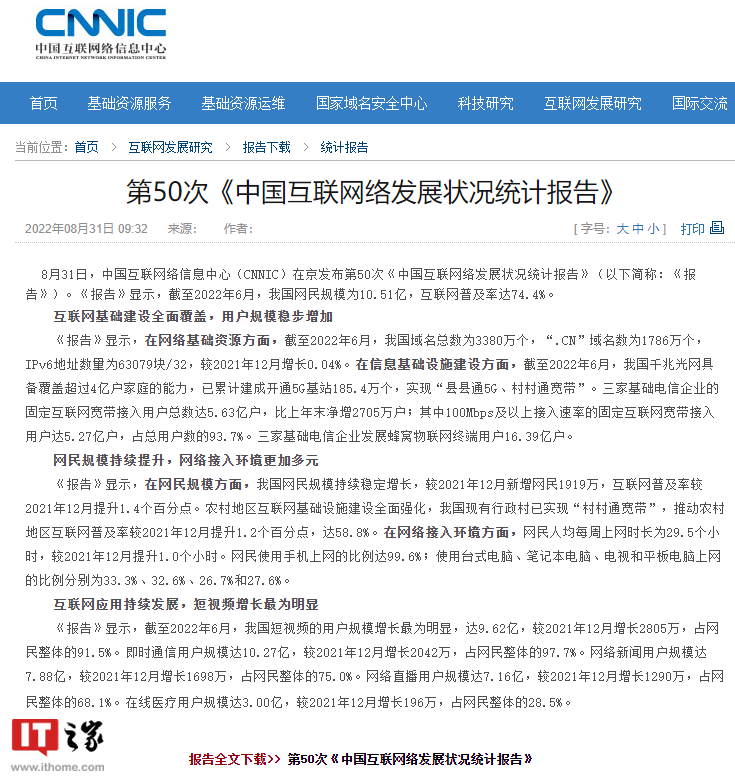 今日,中國互聯網絡信息中心(CNNIC)在京發布了第 50 次《中國互聯網絡發展狀況統計報告》(以下簡稱:《報告》)。