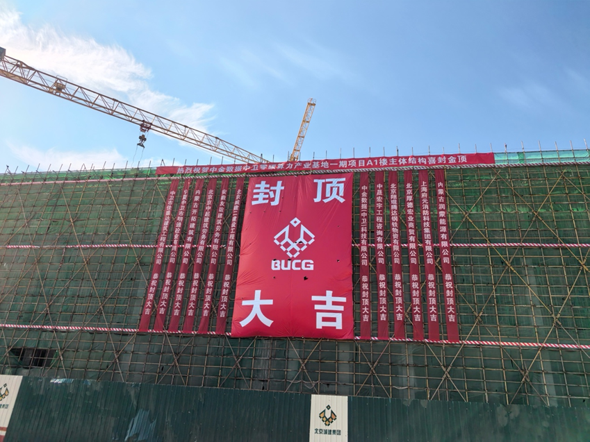 7月28日,位于中衛工業園的中金數據中衛零碳算力基地項目一期A1樓主體結構順利封頂。