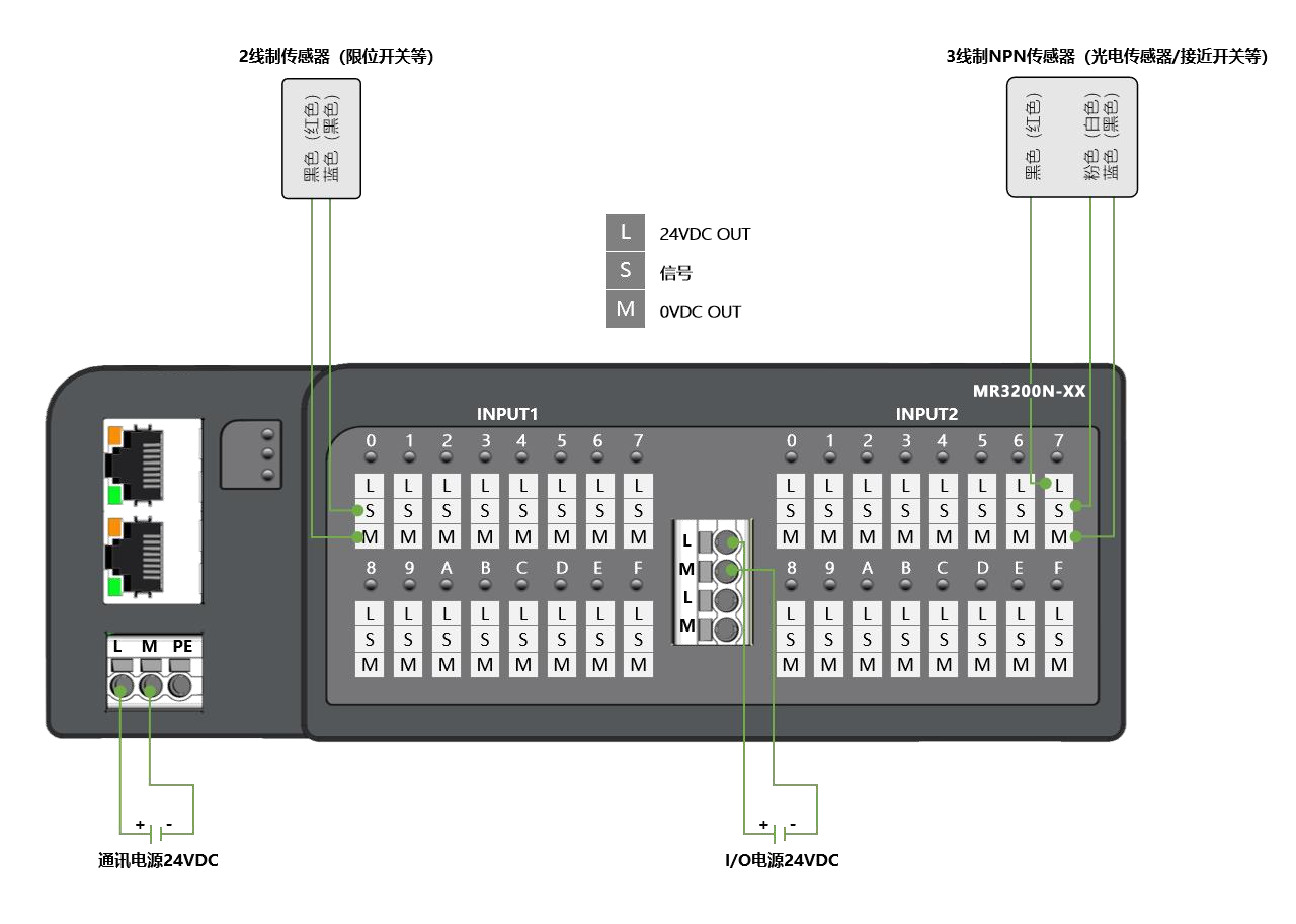 電源接口:模塊供電:3P歐式彈簧端子;負載供電:4P歐式彈簧端子
