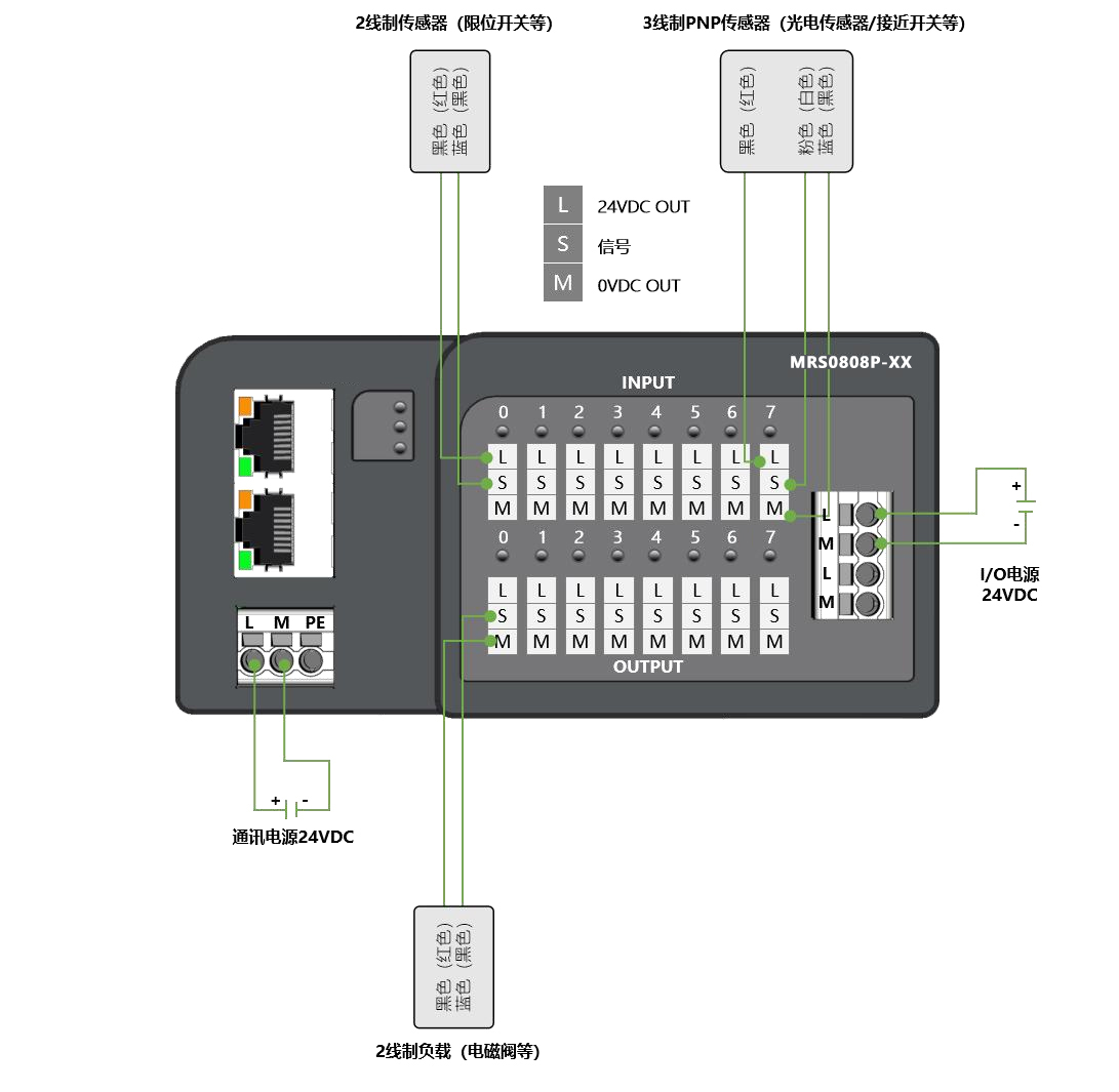 電源接口:模塊供電:3P歐式彈簧端子;負(fù)載供電:4P歐式彈簧端子