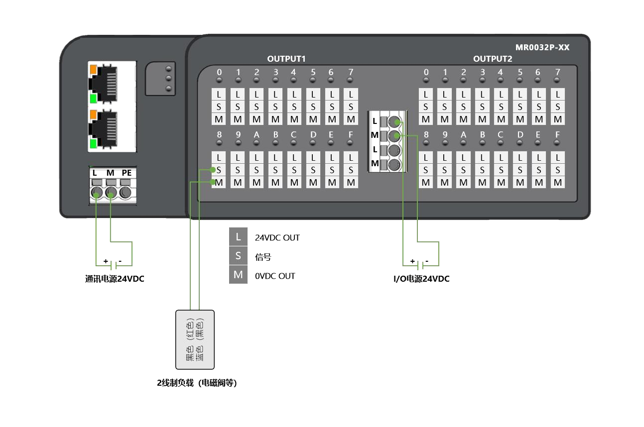 電源接口:模塊供電:3P歐式彈簧端子;負載供電:4P歐式彈簧端子