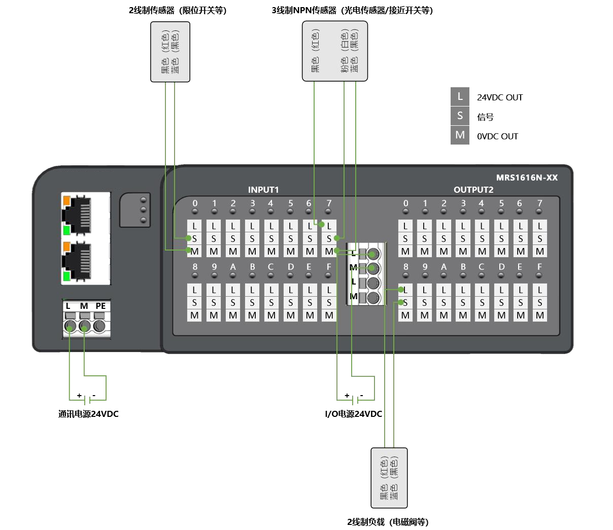 面板式快接線分布式I/O,EtherCAT通訊,2xRJ45,可級(jí)聯(lián);數(shù)字量16入16出 NPN,24VDC,0.5A,歐式彈簧端子;導(dǎo)軌安裝&打孔安裝(下單時(shí)需備注)