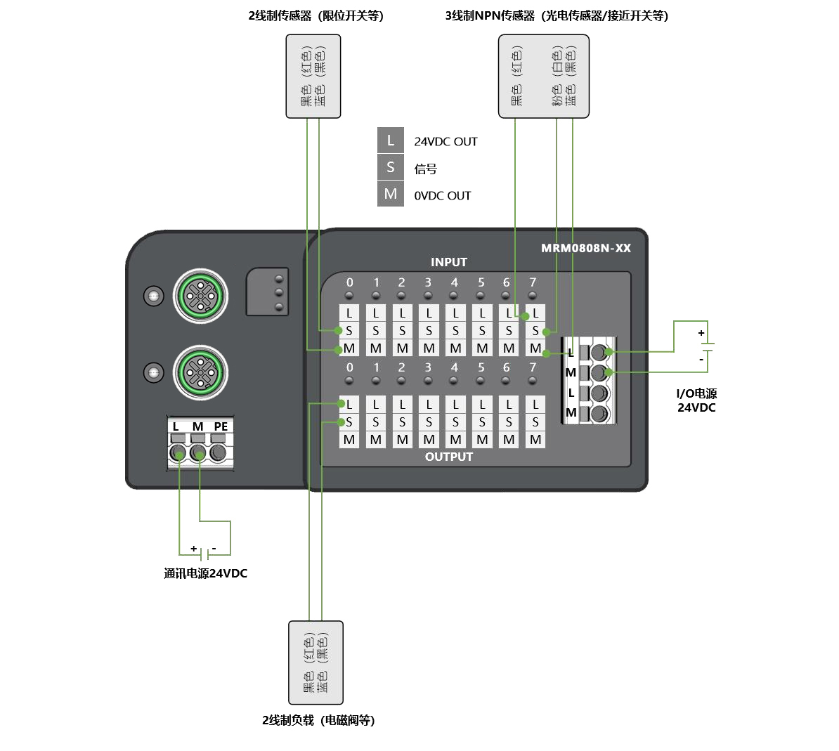 電源接口:模塊供電:3P歐式彈簧端子;負(fù)載供電:4P歐式彈簧端子