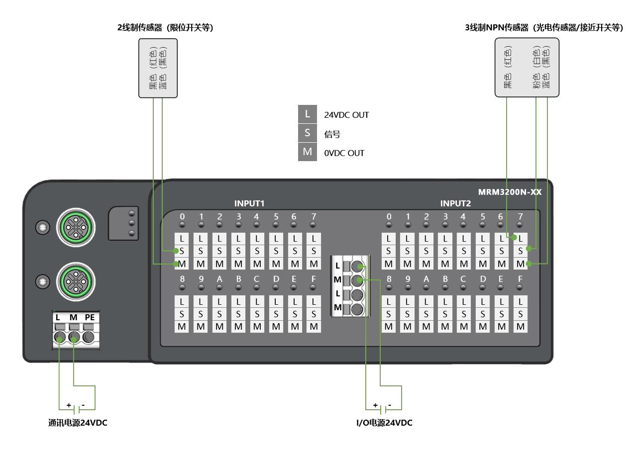 面板式快接線分布式I/O,CC-Link IE FieldBasic通訊,2xM12,可級聯;數字量32入 NPN,24VDC,E-con連接器;導軌安裝&打孔安裝(下單時需備注)