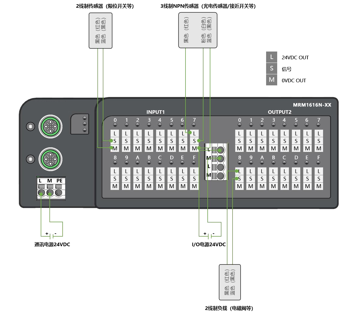 面板式快接線分布式I/O,EtherCAT通訊,2xM12,可級(jí)聯(lián);數(shù)字量16入16出 NPN,24VDC,0.5A,E-con連接器;導(dǎo)軌安裝&打孔安裝(下單時(shí)需備注)
