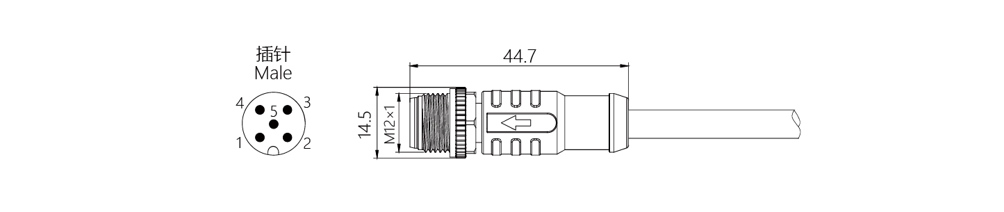 規格描述:M12-散線,直型針-5芯散線,A-Code